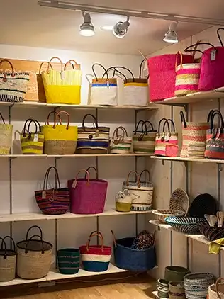 Das Angebot umfasst eine vielfältige Auswahl an handgefertigten Sisalkörben, Taschen und Accessoires, die alle nachhaltig produziert werden.
