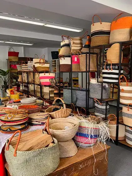 On an area of about 100m², our baskets, bowls, coasters as well as jewelry, wooden goods, and Maasai blankets are displayed – and the selection keeps growing.